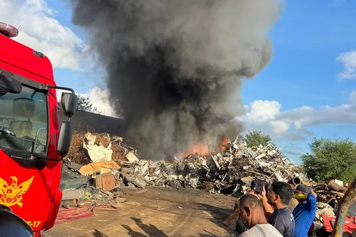 Um incêndio atingiu um ferro-velho que também funcionava como centro de reciclagem nessa quarta-feira (6), às margens da rodovia AL-220, no bairro Nilo Coelho, em Arapiraca.