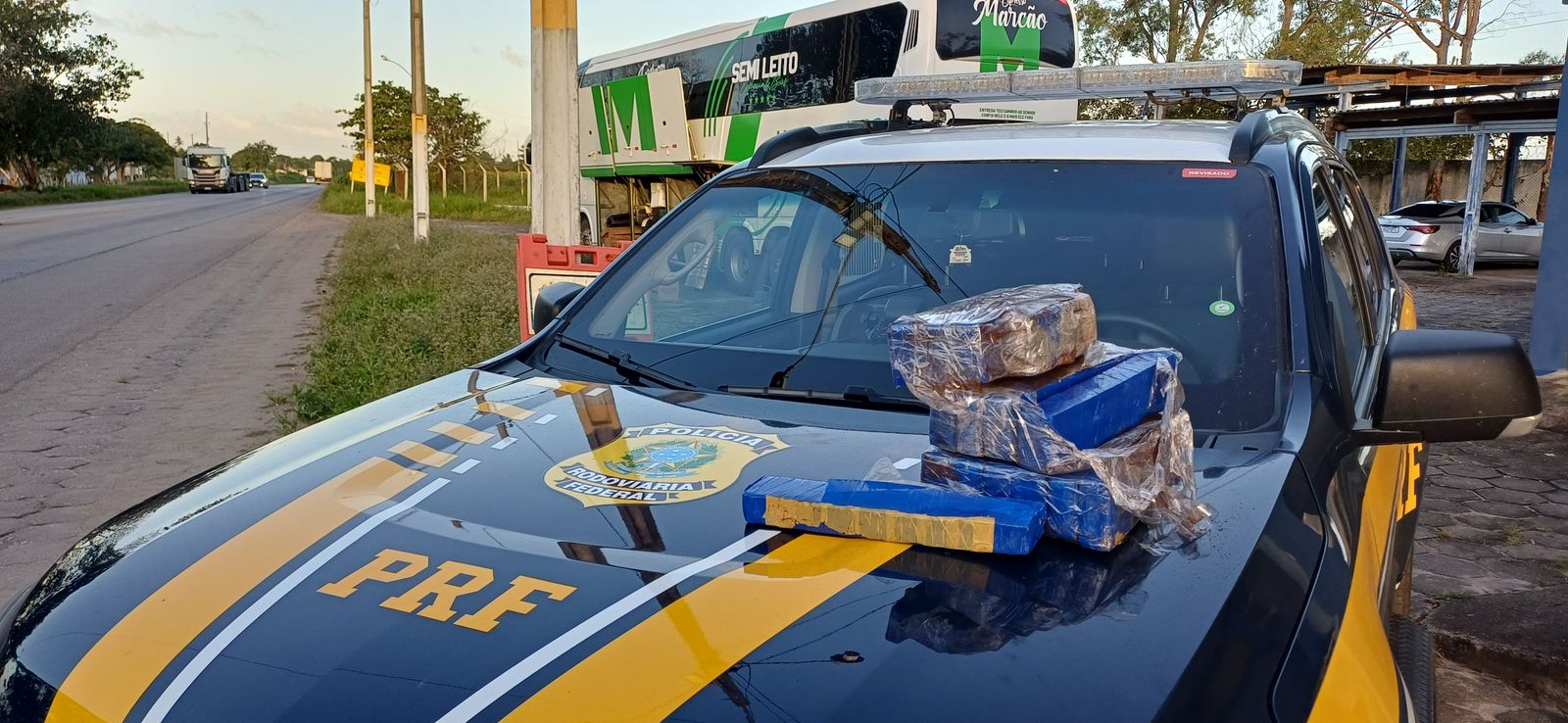 Era por volta das 17h, quando a equipe da PRF deu ordem de parada a um ônibus que vinha da Cidade Gaúcha/PR com destino a Maceió/AL. Durante a abordagem, foi encontrada uma mochila com 15 tabletes de maconha com o peso total de 12kg.