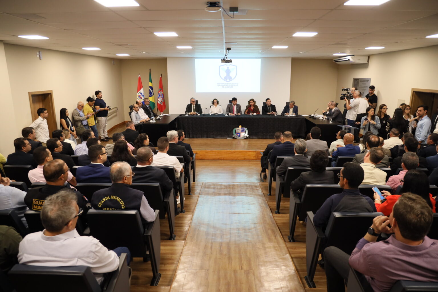 O Núcleo de Controle Externo da Atividade Policial (NUCAP) e promotores de Justiça que também atuam nessa área promoveram uma reunião, nesta segunda-feira (22), com Polícia Federal, prefeitos, secretários municipais, coordenadores de Guardas Civis Municipais, sindicatos e associações para tratar da necessidade de regularização dessa categoria profissional. O encontro foi na sede do Ministério Público do Estado de Alagoas (MPAL), no bairro do Poço, em Maceió.