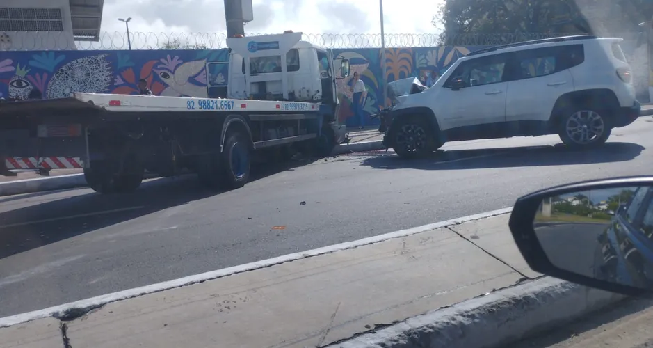 Um acidente envolvendo um carro da marca Jeep e um caminhão-guincho interditou um trecho da rodovia AL-101, no bairro Jaraguá, em Maceió, na tarde desta quinta-feira (25). Apesar do impacto, ninguém ficou ferido.
