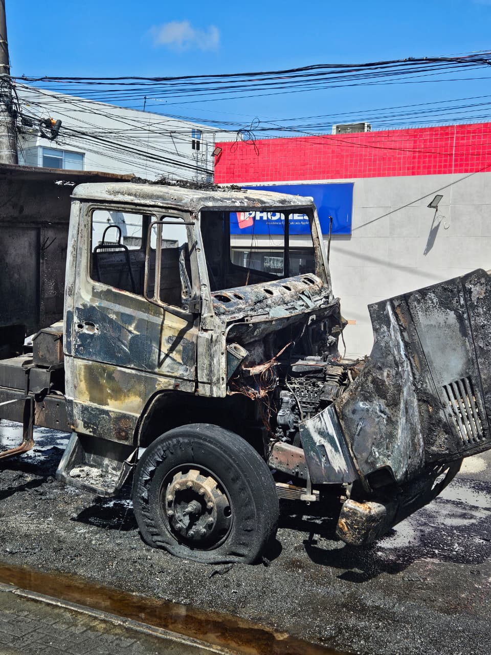 O veículo foi completamente consumido pelo fogo. Apesar da gravidade do incêndio, não houve registro de vítimas.
