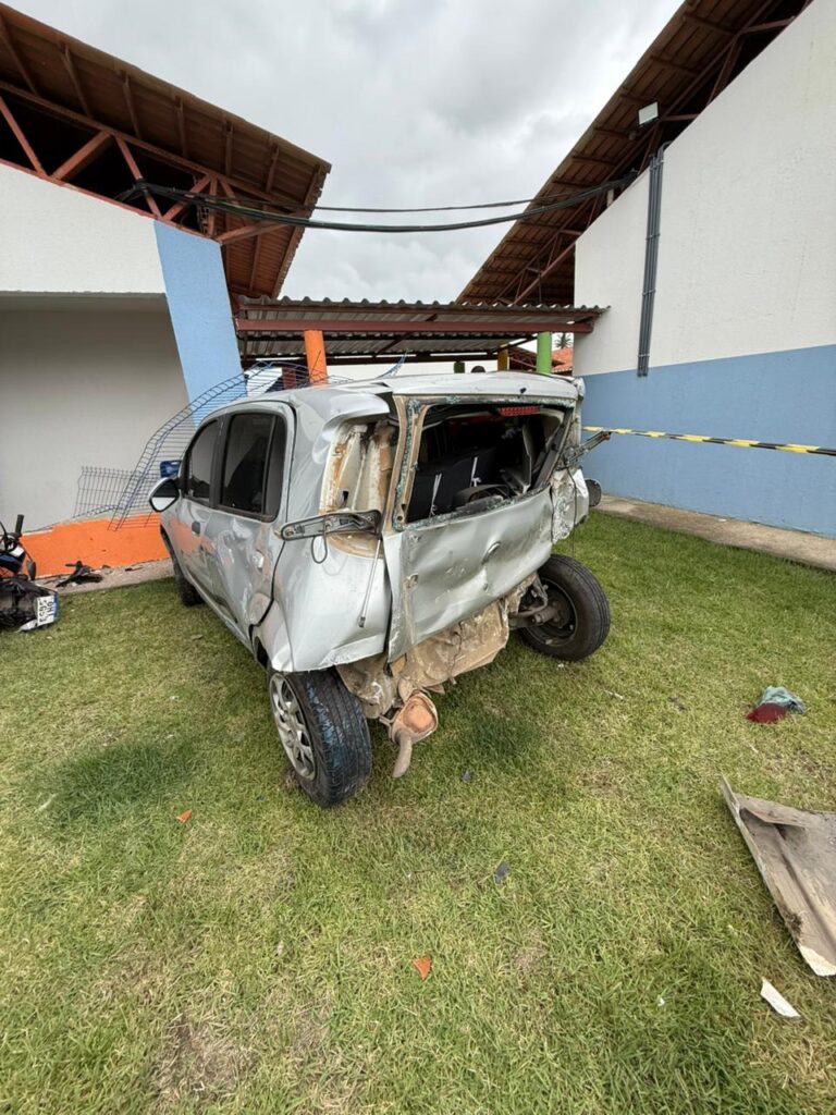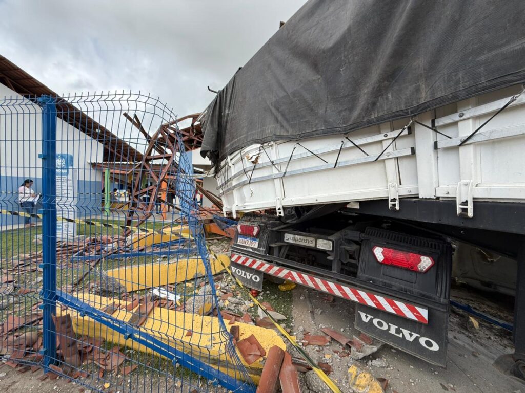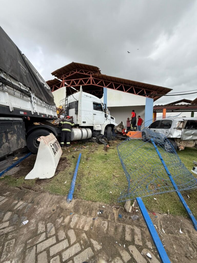 No local a carreta, além de colidir com a estrutura da escola, a carreta também colidiu com quatro motocicletas e um veículo de passeio, sem vítimas. Informações repassadas é que o motorista da carreta, não viu um quebra-molas e acabou perdendo o controle do veículo.
