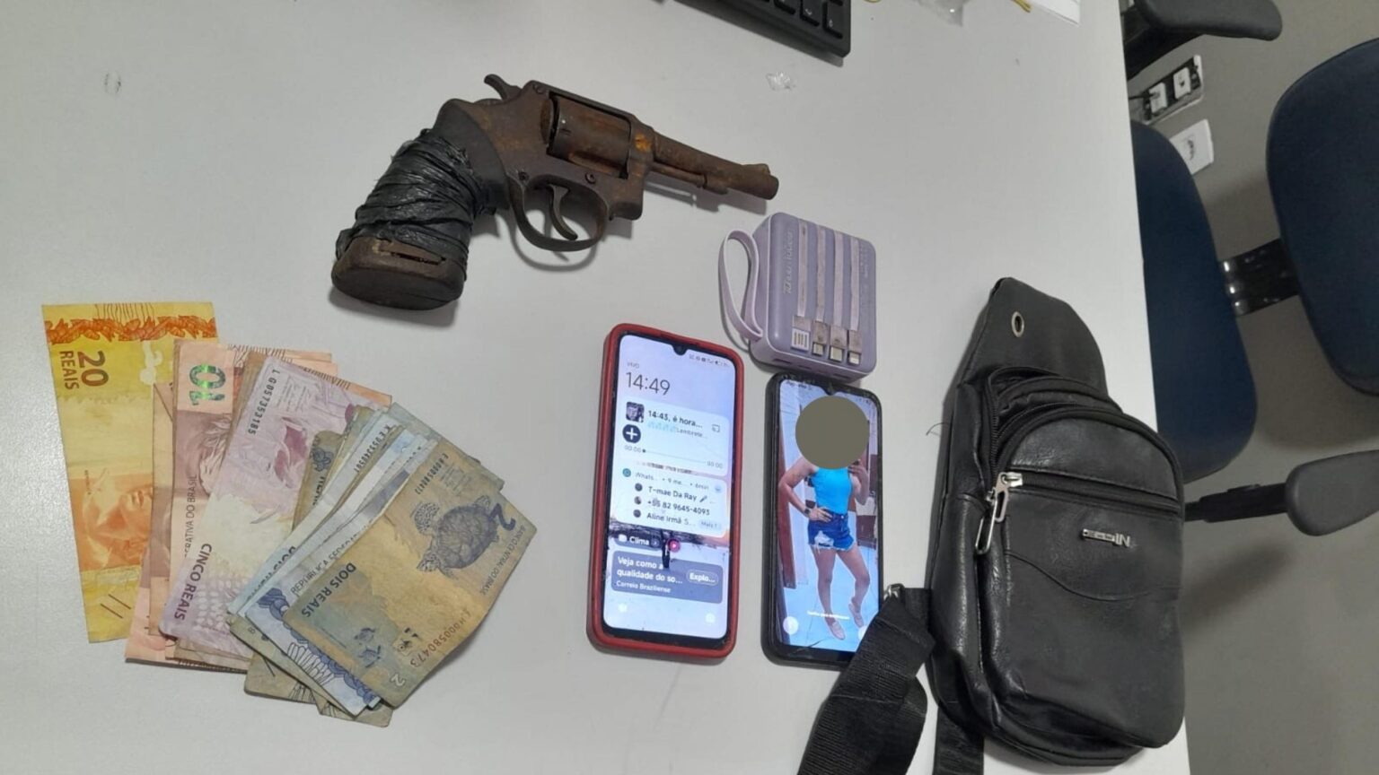 Os militares foram acionados pelo Copom após populares deterem o suspeito durante uma tentativa frustrada de assalto. No local, ele foi flagrado portando um revólver calibre 38 e dois aparelhos celulares.