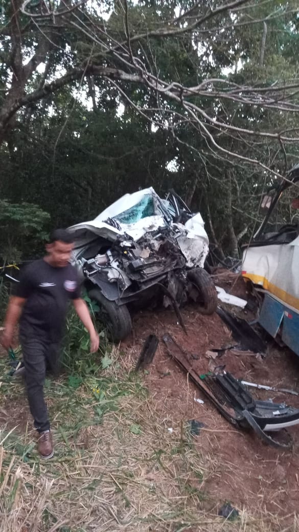 Era por volta das 17 horas quando uma equipe do Corpo de Bombeiros Militar foi acionada para atender o sinistro, na AL 101 Sul. A colisão foi frontal e carro foi arremessado para dentro de um matagal. No local foi constatado a morte de um homem identificado como João da Funerária. A esposa, que teve a identidade preservada foi encaminhada para a Unidade de Pronto Atendimento (UPA) Clovis Lemos Farias, na cidade de Coruripe. O micro-ônibus transportava trabalhadores rurais.
