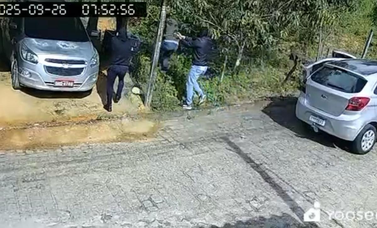 Imagens de câmeras de vídeo e monitoramento registraram o momento em que os suspeitos descem do veículo e efetuam disparos contra os irmãos.
