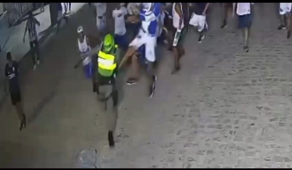 Cenas registradas no Estádio Rei Pelé mostram torcedores agredindo policiais militares e depredando instalações; investigação busca identificar os responsáveis
