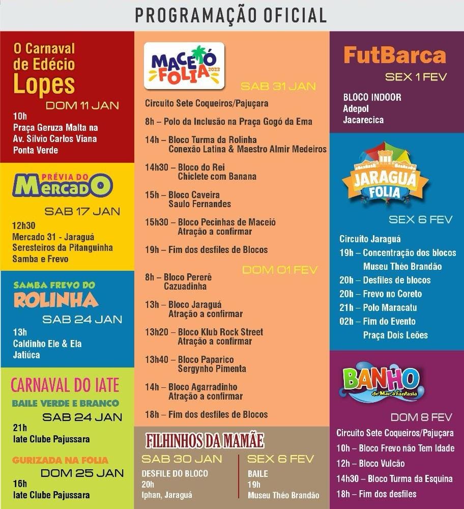 A partir dessa data, todos os fins de semana até o Carnaval, que começa no dia 14 de fevereiro, contarão com eventos promovidos pela Liga, abertos, fechados e nas ruas de Maceió.