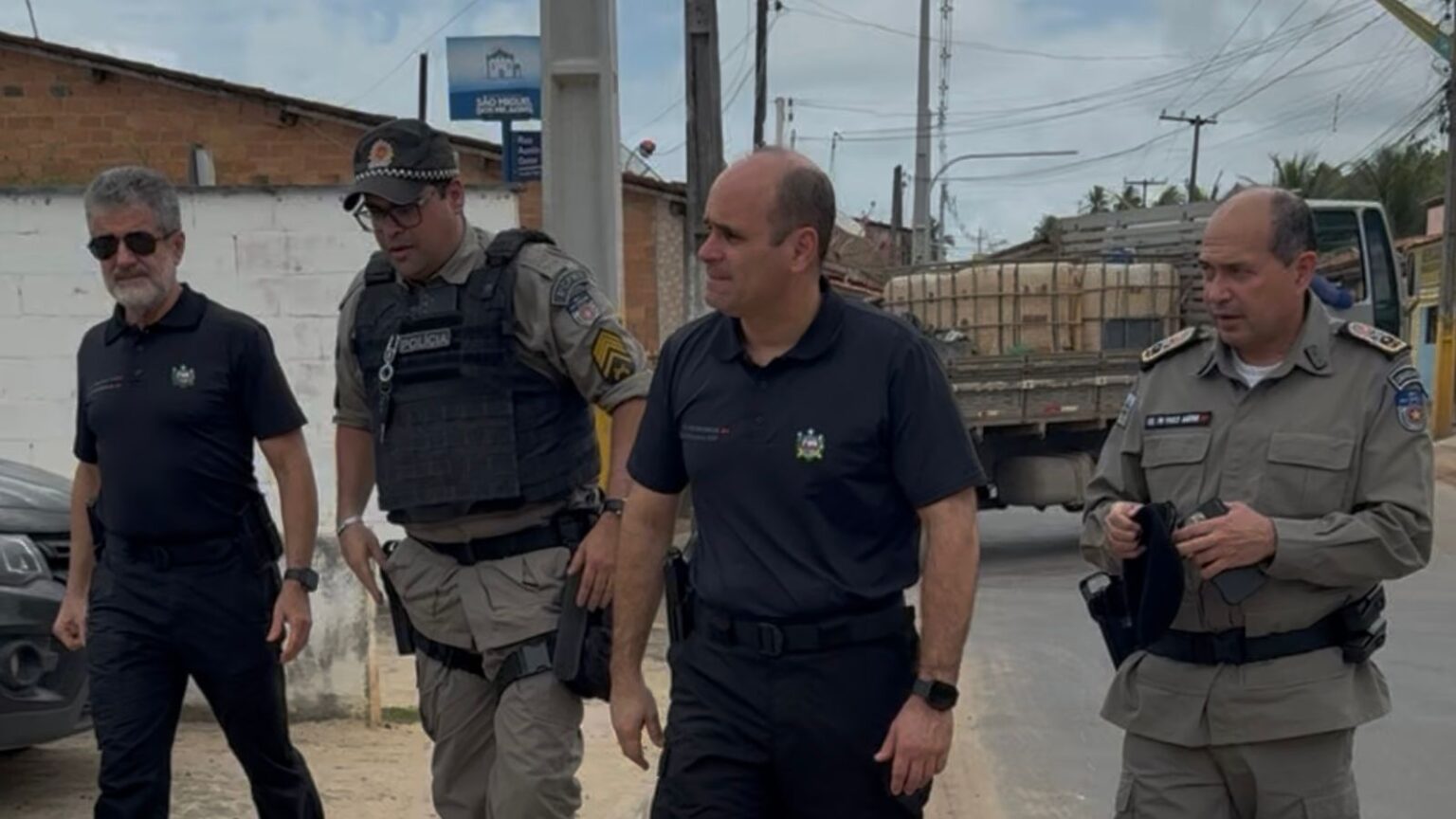 O secretário Flávio Saraiva acompanhou de perto o início da operação, ao lado do comandante-geral da Polícia Militar, coronel Paulo Amorim, e do secretário-executivo da SSP, coronel Patrick Madeiro.