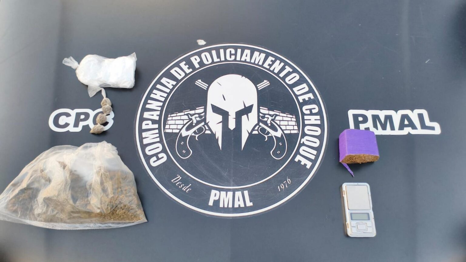 Durante o cerco policial e as diligências de saturação, guarnições do 1º Batalhão da Polícia Militar, do Batalhão de Operações Policiais Especiais (BOPE) e da Companhia Choque realizaram incursões em becos e vielas. Foi quando dois indivíduos em atitude suspeita tentaram fugir ao perceber a presença das equipes. Um deles foi alcançado e abordado e, durante a ação, tentou se desfazer de uma sacola. No interior, os policiais encontraram aproximadamente 185 gramas de maconha e uma balança de precisão, material comumente utilizado para o fracionamento e a comercialização de entorpecentes.