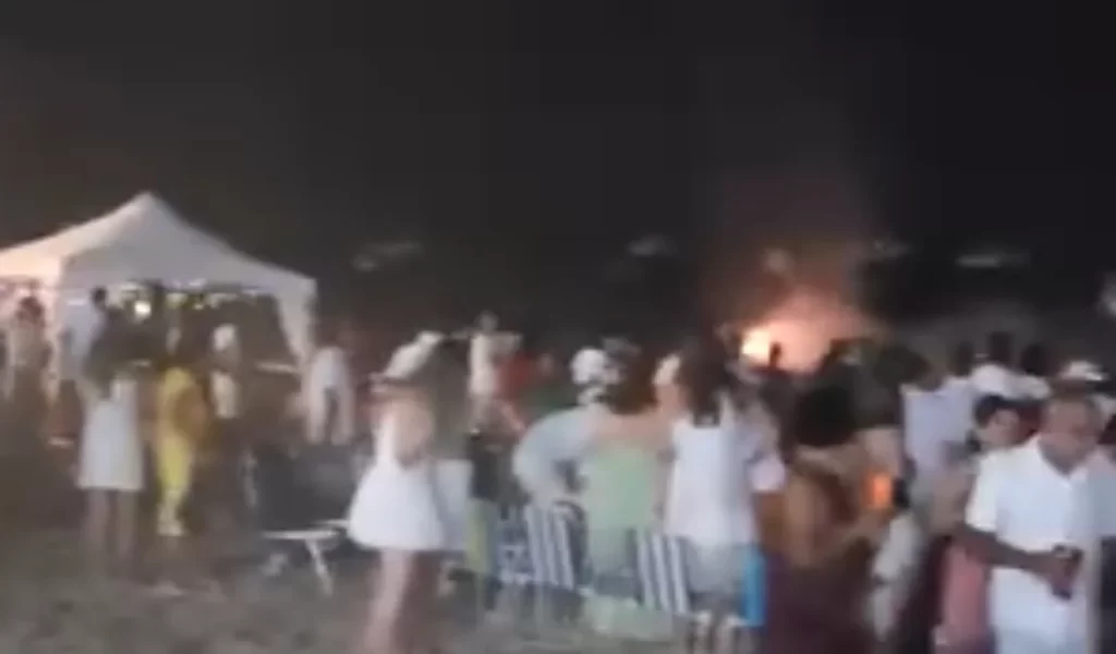 O incidente ocorreu durante a queima de fogos organizada para marcar o Réveillon na localidade. Vídeos que circulam nas redes sociais mostram o momento em que a embarcação perde a estabilidade, provocando correria entre as pessoas que assistiam ao espetáculo à beira-mar. Apesar do susto e do risco, não houve registro de feridos.