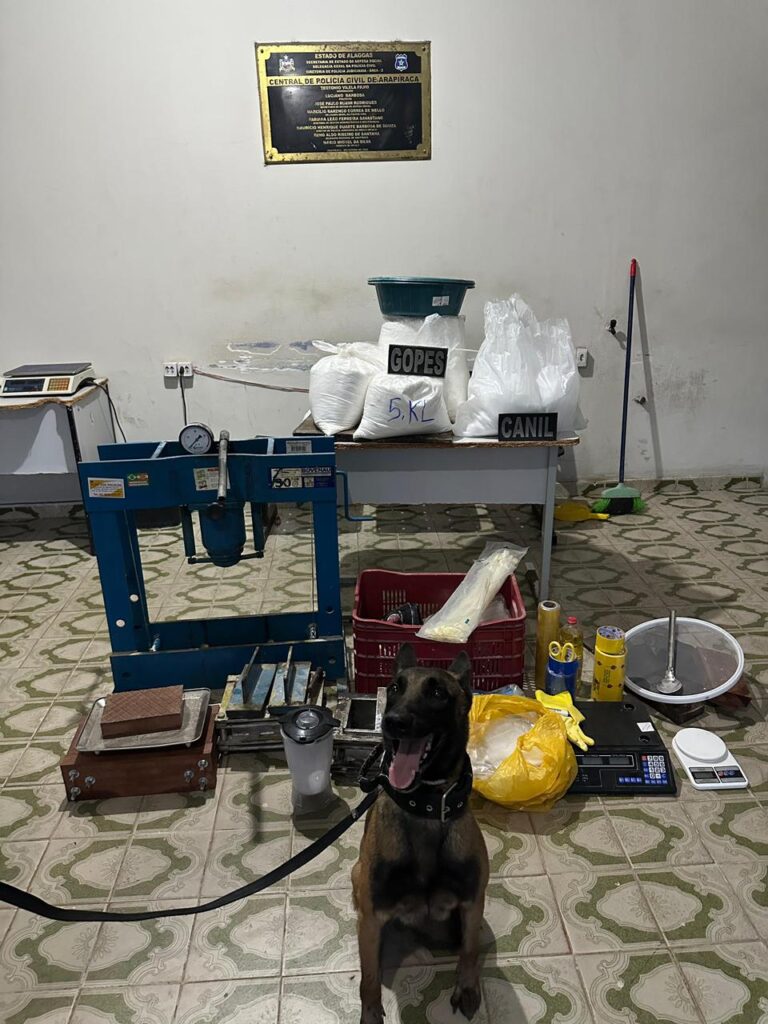 Uma ação integrada da Polícia Militar de Alagoas resultou no desmantelamento de uma refinaria de drogas no município de Arapiraca, no bairro Senador Nilo Coelho, na tarde deste domingo (4). A ocorrência foi registrada por militares da 10ª Companhia de Polícia Militar Independente (CPM/I), com apoio do Pelotão de Operações Policiais Especiais (PELOPES) e do Canil do 3º Batalhão de Polícia Militar.