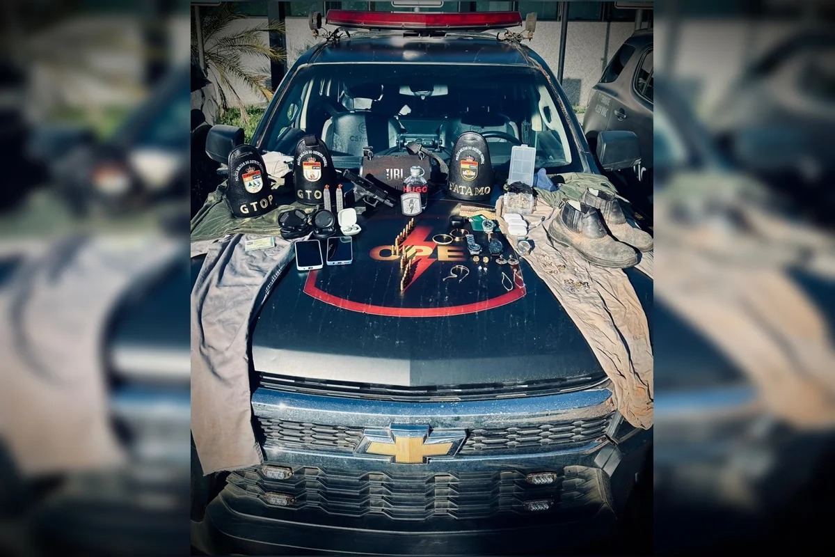 Entre os materiais apreendidos estão uma pistola Glock, 20 munições calibre 9 mm, diversas joias, dois celulares e quatro relógios de marca, entre eles um Rolex.