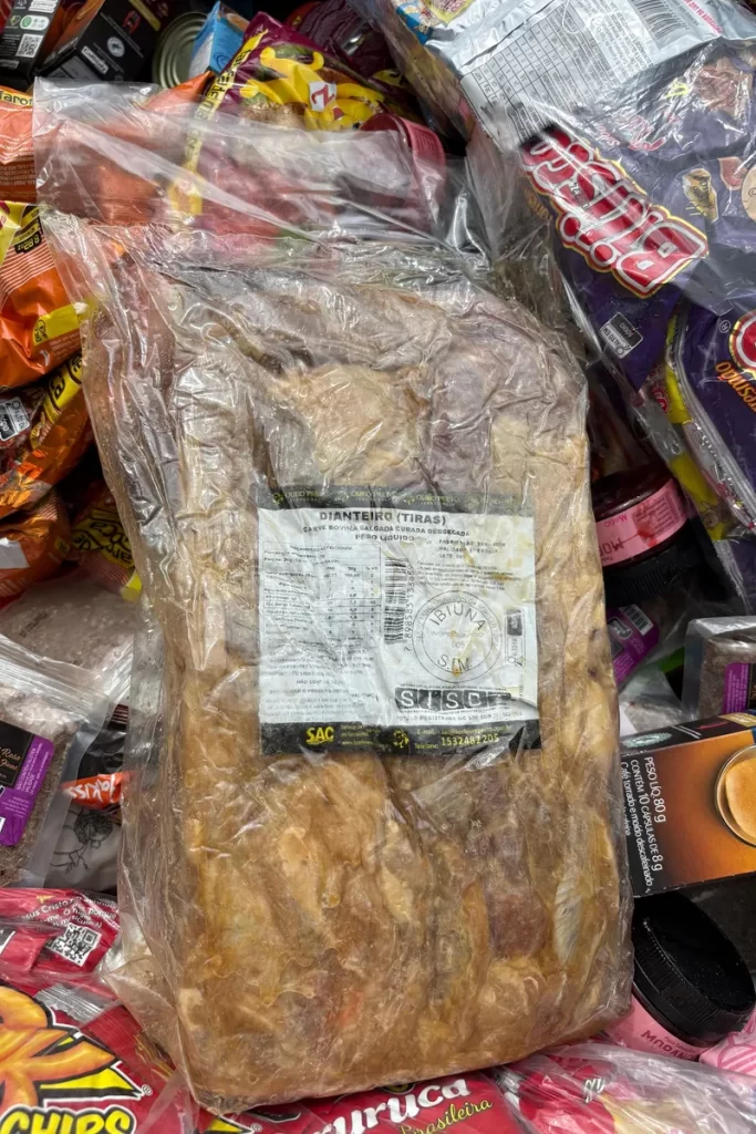 Entre os produtos apreendidos estavam leite de coco, charque, mortadela, pão, catchup, farofa, pipoca e refrigerantes. Diante das irregularidades, os alimentos foram recolhidos e retirados de circulação.