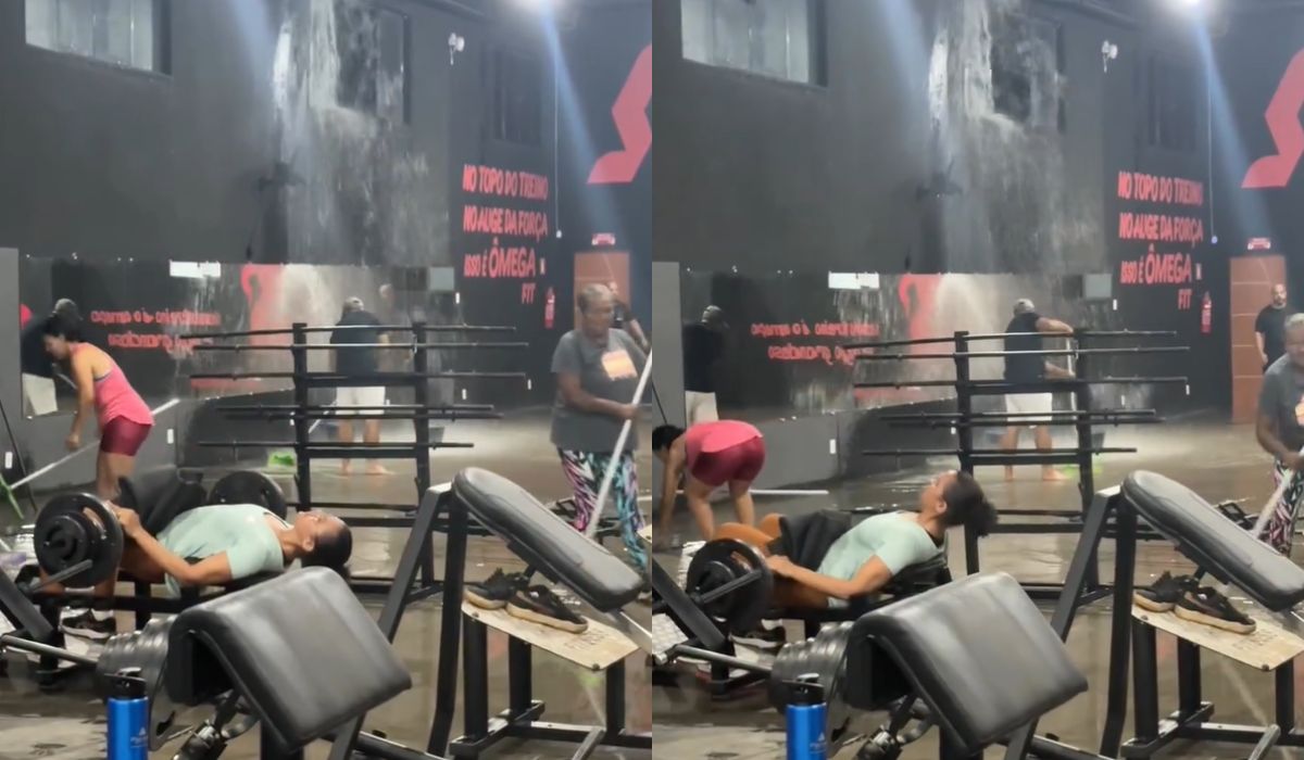 O episódio que viralizou ocorreu na segunda-feira, no bairro Lagoa das Flores, em Vitória da Conquista, no interior da Bahia. Nas imagens, Gislane aparece praticando elevação pélvica tranquilamente enquanto a academia era invadida pela água após o rompimento de um cano, deixando o local completamente alagado.