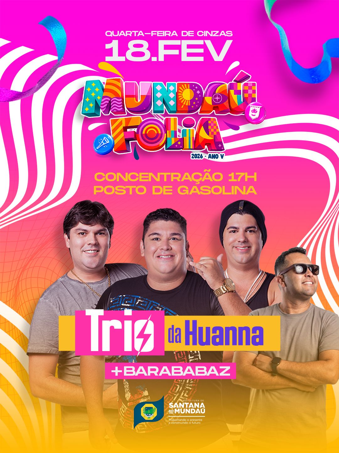 O carnaval está batendo à porta, e, como já é tradição, o Mundaú Folia – em Santana do Mundaú, reúne foliões de todas as idades em uma animada programação que conta com dezenas de bloquinhos durante todos os dias de festa. Já na quarta-feira de cinzas (18), o ponto alto da alegria fica por conta do “arrastão” realizado pea prefeitura e, que este ano, ficará sob comando do Trio da Huanna e Barababaz, a partir das 17h.