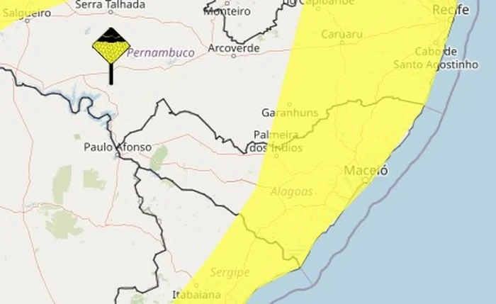 O Instituto Nacional de Meteorologia (INMET) emitiu aviso de acumulado de chuva para 74 municípios de Alagoas, com grau de severidade classificado como perigo potencial. O alerta tem início no sábado, 8, e segue até domingo, 9, com previsão de volumes que podem atingir 50 milímetros por dia.