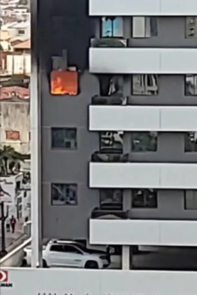 Imagens do local mostram que as chamas já aparecem por uma das janelas do apartamento. Além disso, uma nuvem de fumaça se formou no local. Ninguém ficou ferido.
