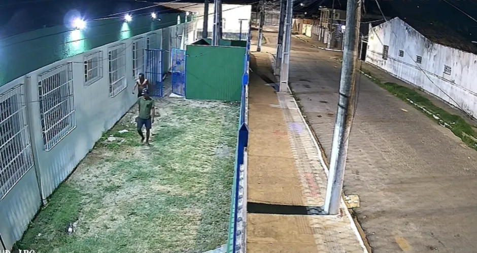 Nas imagens, é possível ver a dupla invadindo a unidade de ensino e puxando com força a unidade condensadora do ar-condicionado, que fica na parte externa. Em seguida, os criminosos pulam o muro e deixam o local levando o equipamento. Um dos homens está sem camisa, usando apenas bermuda. Já o outro suspeito está de camisa verde, bermuda e chapéu.