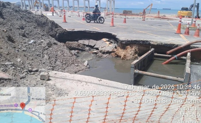 A BRK Ambiental foi autuada pela Prefeitura de Maceió após intervenção em rede de esgoto provocar o rompimento da estrutura e abrir uma cratera na Avenida da Paz, na terça-feira, 17.