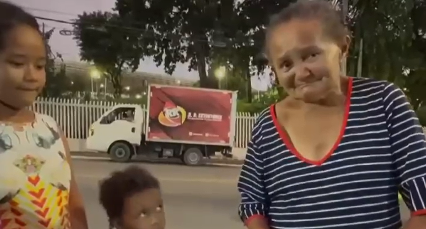 Nas imagens, uma avó aparece trabalhando ao lado das duas netas para garantir o sustento da casa. Empurrando um carro de mão, ela recolhe materiais recicláveis para vender e, assim, colocar comida na mesa. Ao ser questionada, responde com uma frase que resume o peso da responsabilidade que carrega: “Sou avó e mãe”.